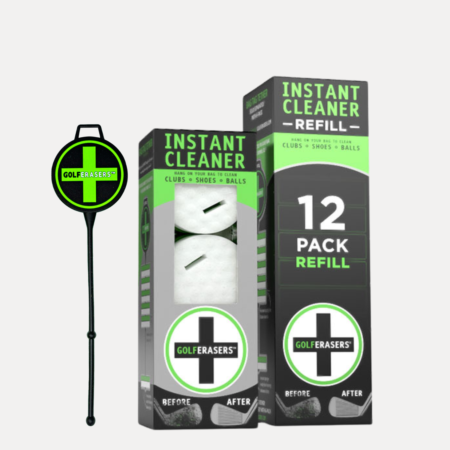 This bundle includes both the GolfERASERS 6-Pack, designed for convenient access on your bag with a silicone tether (included), and a 12-Pack Refill to keep your game spotless all season long. Precision starts with clean equipment. GolfERASERS help you play sharper, cleaner, better.