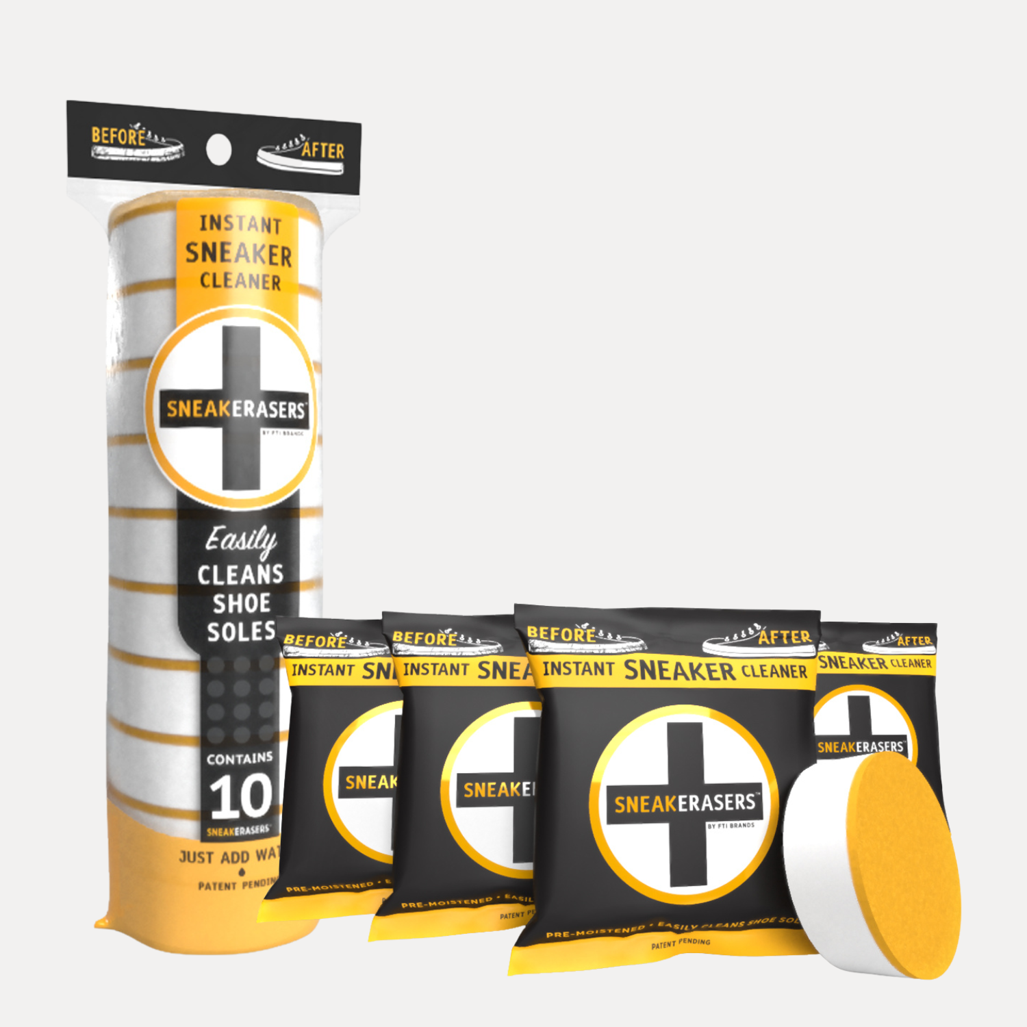 SneakERASERS are the fast, easy way to clean shoes anywhere. This quick clean duo includes a 10-pack of sponges for home use and 4 pre-moistened singles for travel, school, or sports. A practical gift moms, teens, and travelers will love.