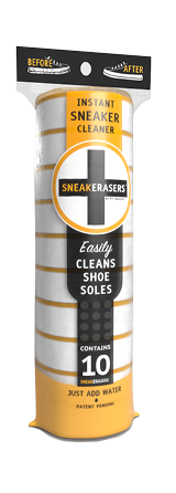 SneakERASERS are the fast, easy way to clean shoes anywhere. This holiday duo includes a 10-pack of sponges for home use and 4 pre-moistened singles for travel, school, or sports. A practical stocking stuffer moms, teens, and travelers will love.